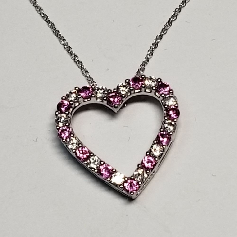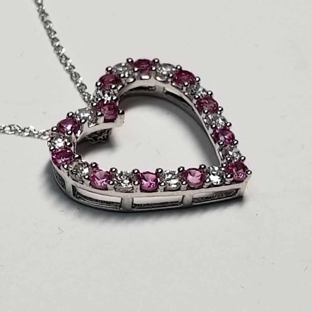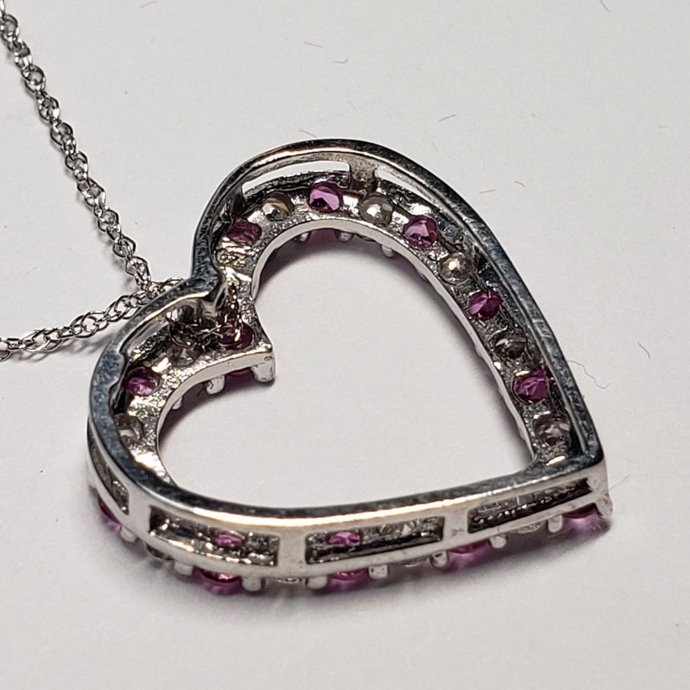 144 - NV01 - STERLING SILVER PINK SAPPHIRE CUBIC ZIRCONIA HEART NECKLACE (~WEIGHT 2.11G). JEWELRY