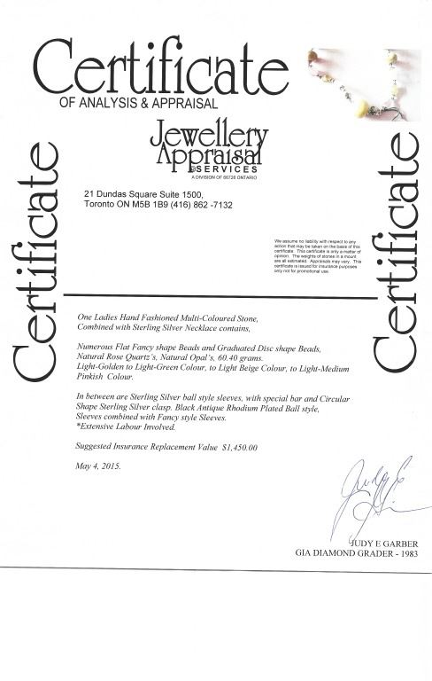 W/ COA -SUGGESTED REPLACEMENT VALUE $1,450.00