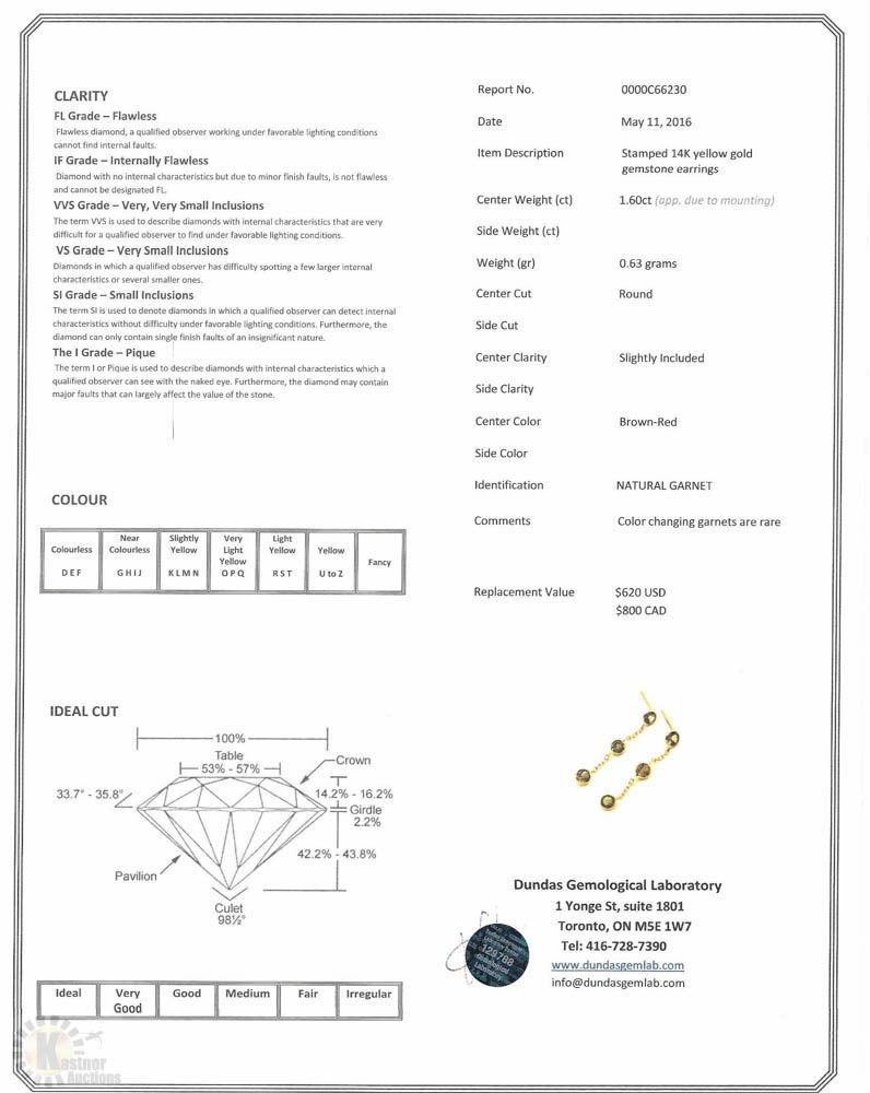 GARNET(1.60CT) EARRINGS W/ COA - SUGGESTED REPLACEMENT VALUE $800.00