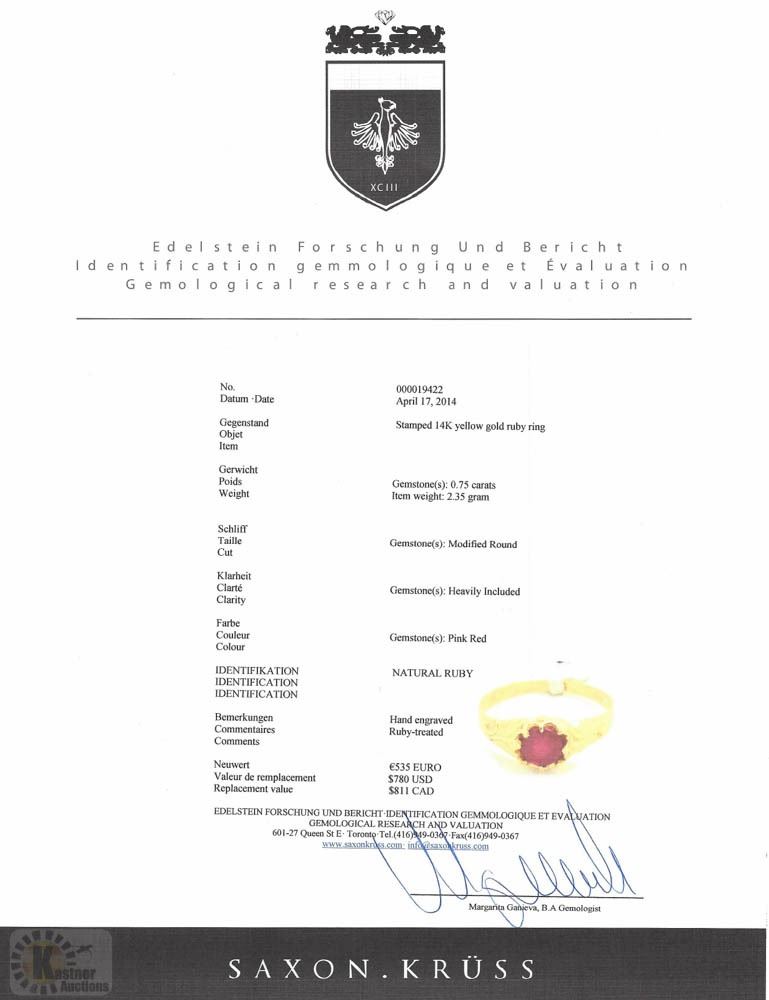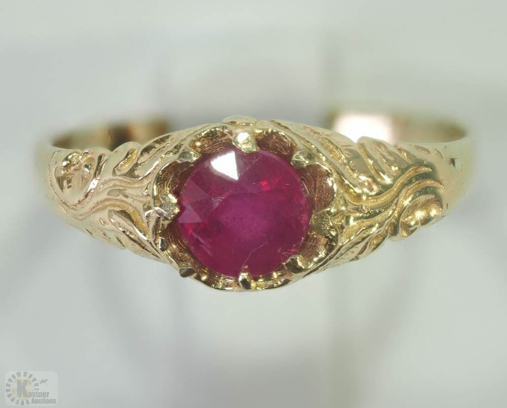 14KT YELLOW GOLD RUBY(0.75CT) RING W/ COA - SUGGESTED REPLACEMENT VALUE $811.00