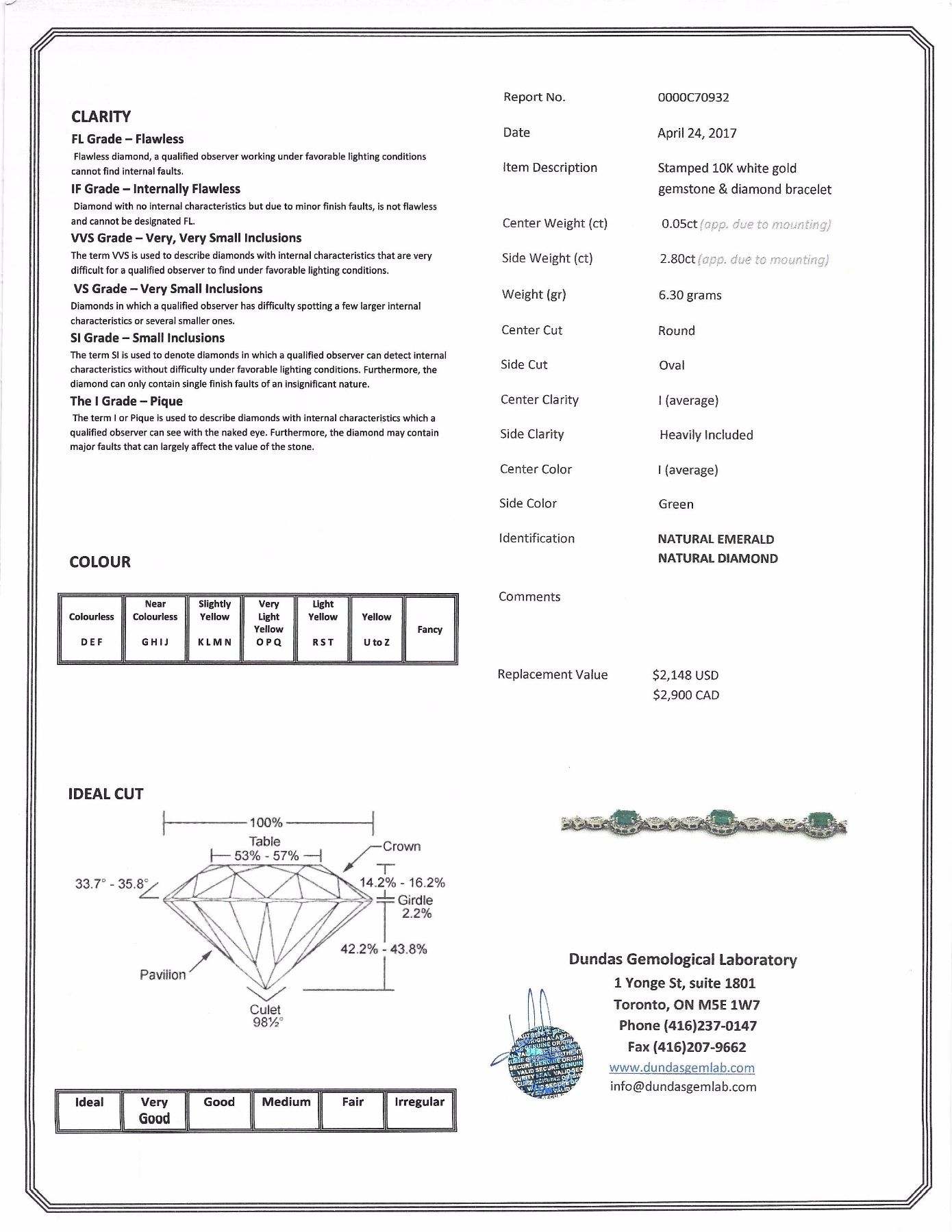 (46 - NT45) BRACELET WITH COA -SUGGESTED REPLACEMENT VALUE $2,900.00.JEWELLERY