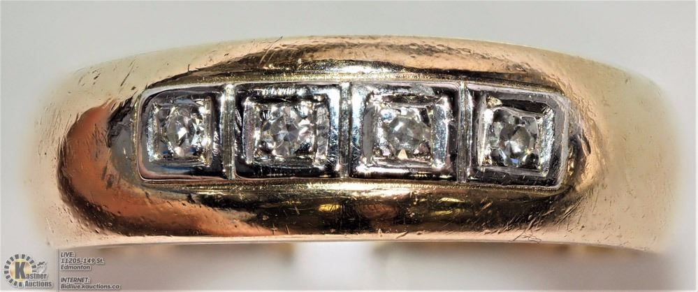 (8-NT-46)10K YELLOW GOLD 4 DIAMOND MEN'S RING SIZE:6.5 W/ COA. SUGGESTED REPLACEMENT VALUE $1550.00