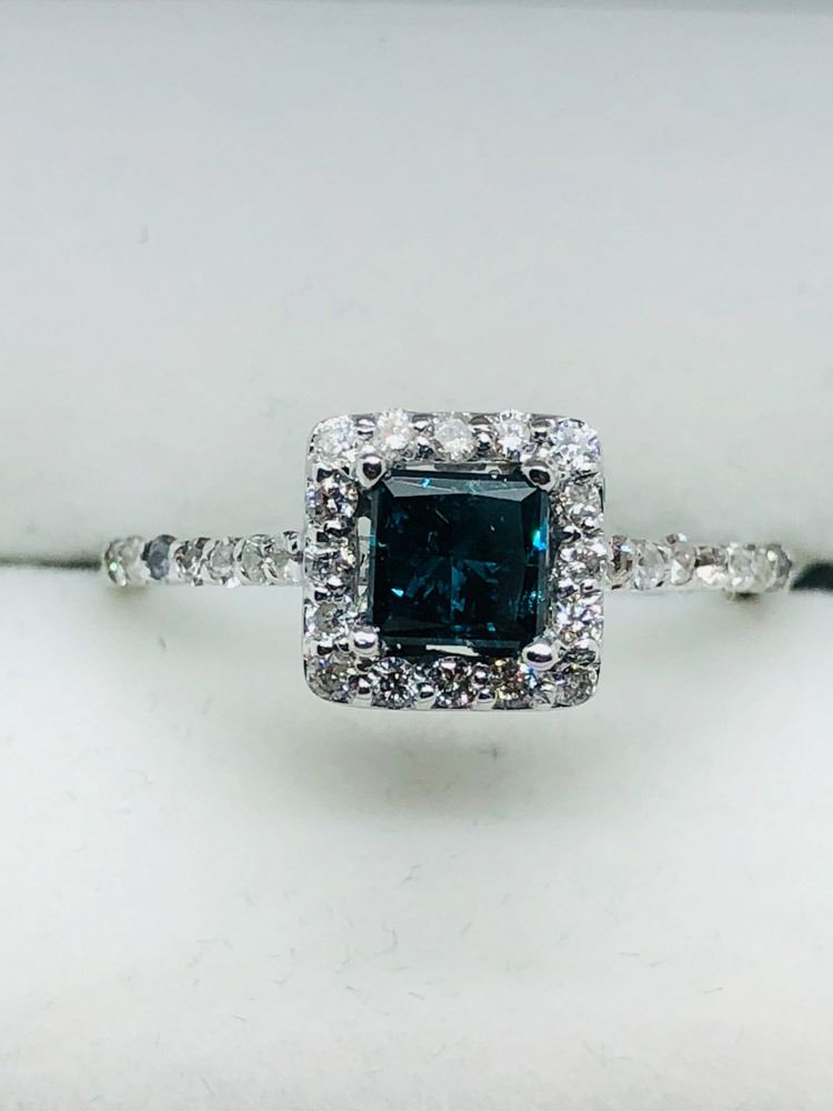 46 - JP258 - 14K WHITE GOLD BLUE DIAMOND (0.5CTS) & DIAMOND (0.3CTS.) RING (SIZE 6.25) (~WEIGHT 2.4G), MADE IN CANADA, W/COA. APPRAISAL NOT FROM A LOCAL VERIFIED APPRAISER. SUGGESTED REPLACEMENT VALUE $4600.00. JEWELRY