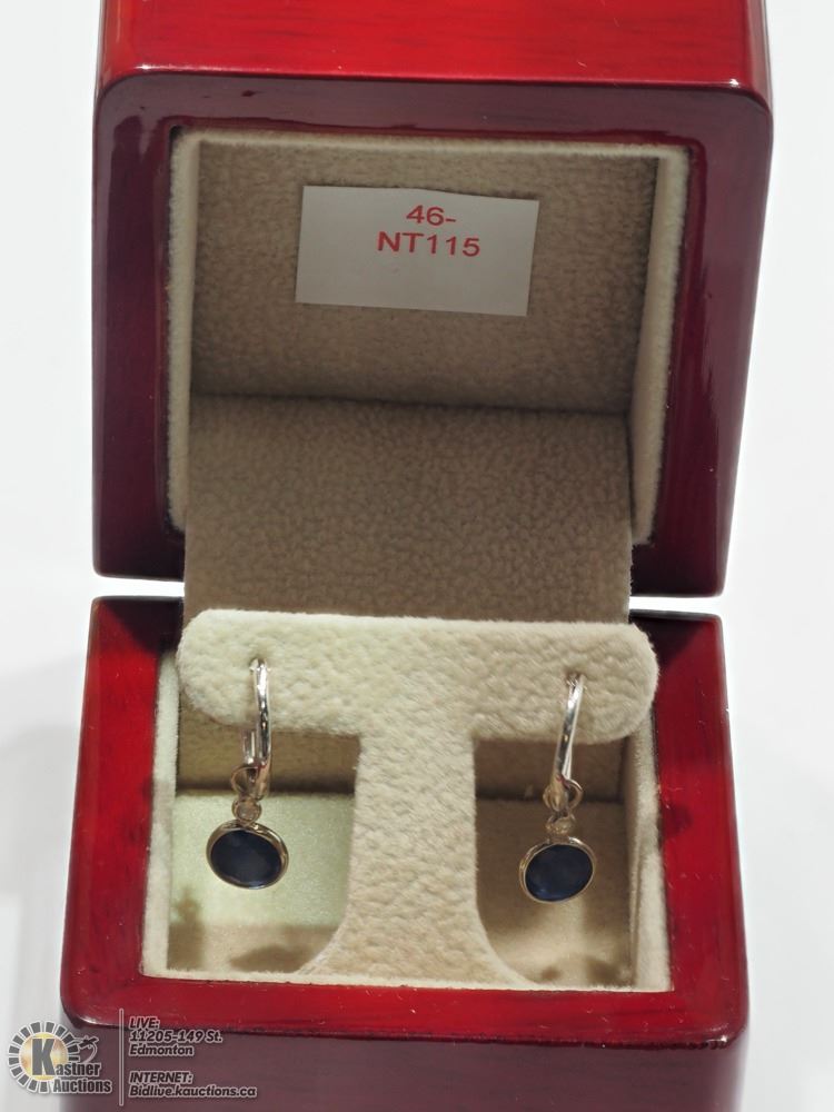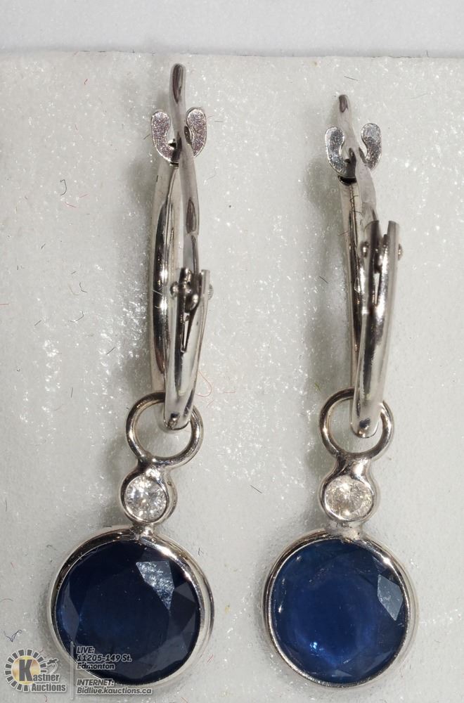 46-NT115- 14K WHITE GOLD SAPPHIRE (2.3CT) AND DIAMOND HOOP EARRINGS W/COA. SUGGESTED REPLACEMENT VALUE $1790.00. JEWELLERY.