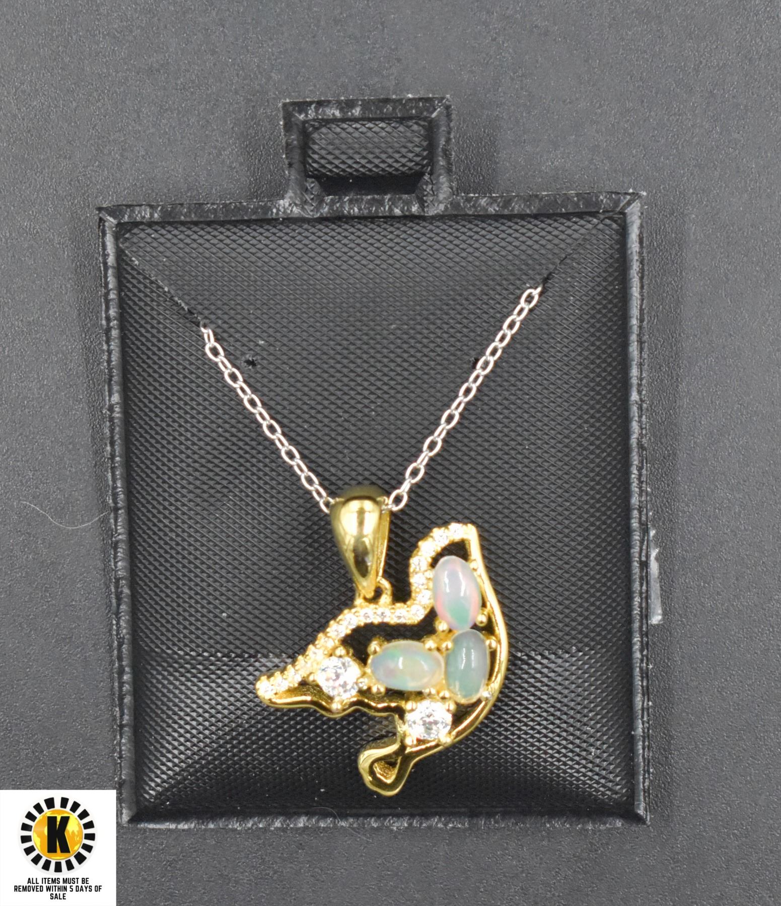 #46-NATURAL  FIRE OPAL 3.5 X5  PENDANT NECKLACE 16