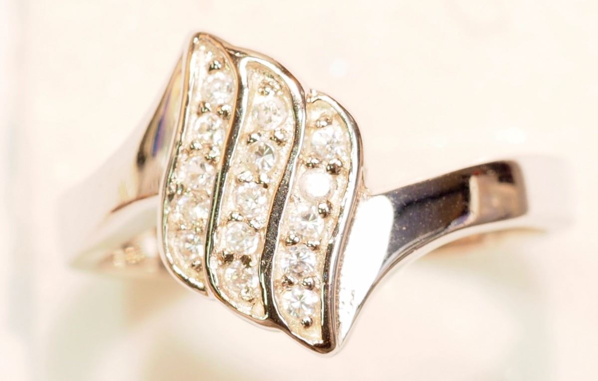 #46-STERLING SILVER CUBIC ZIRCONIA WAVE DESIGN RING