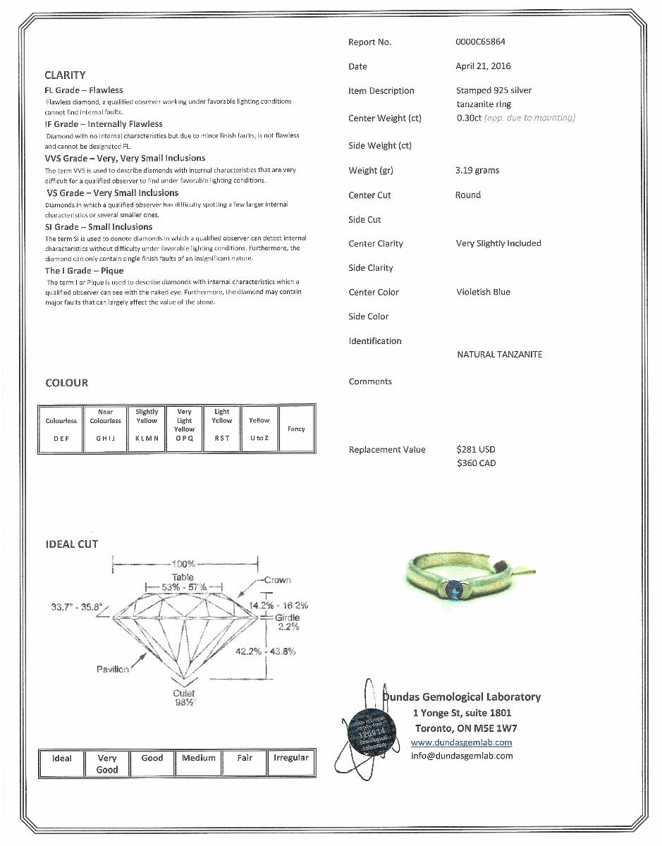 #46-STERLING SILVER TANZANITE(0.30CT) RING