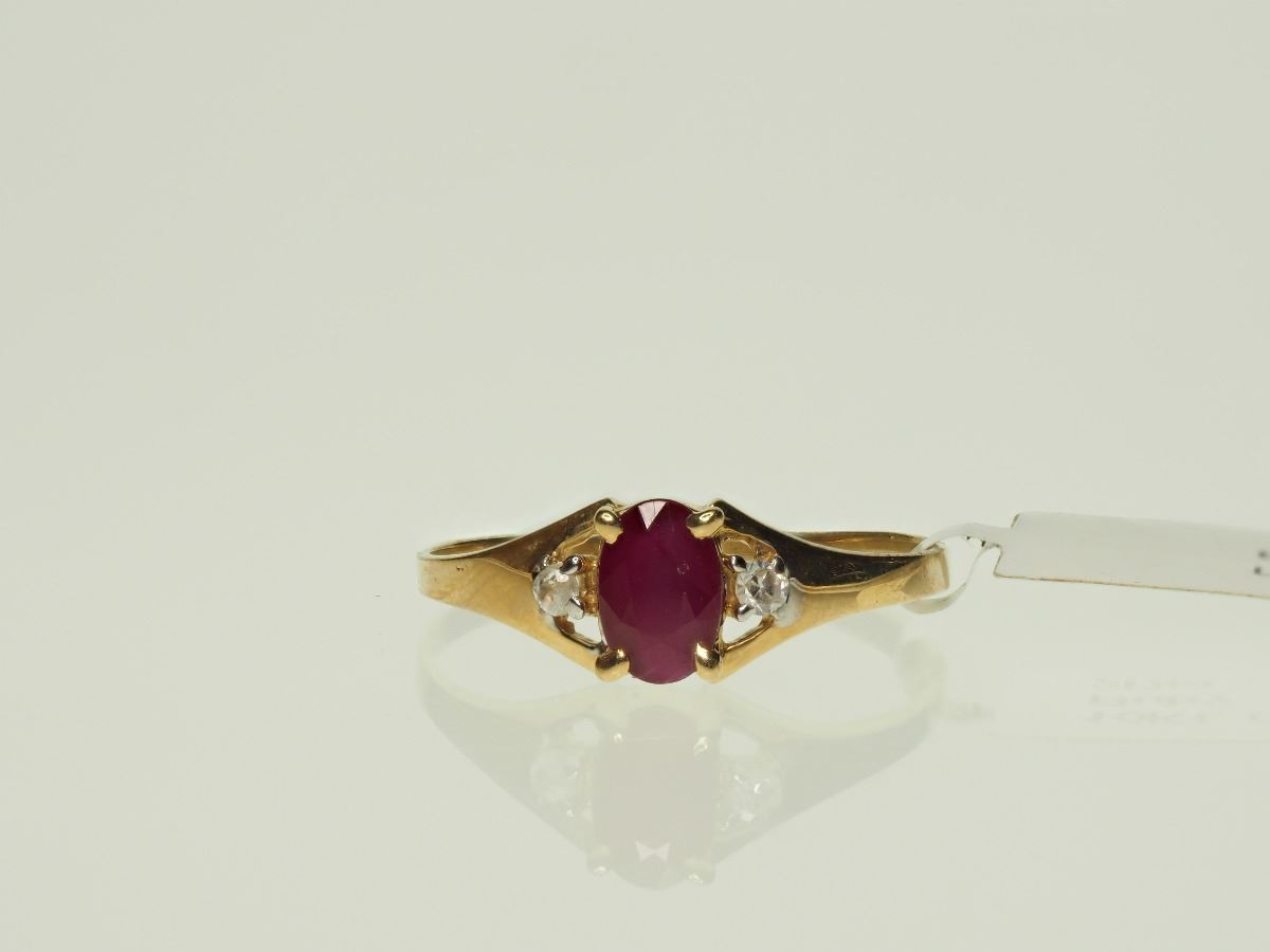 10K YELLOW GOLD RUBY(0.65CT) & DIAMOND RING. W/ COA- SUGGESTED REPLACEMENT VALUE $676.00