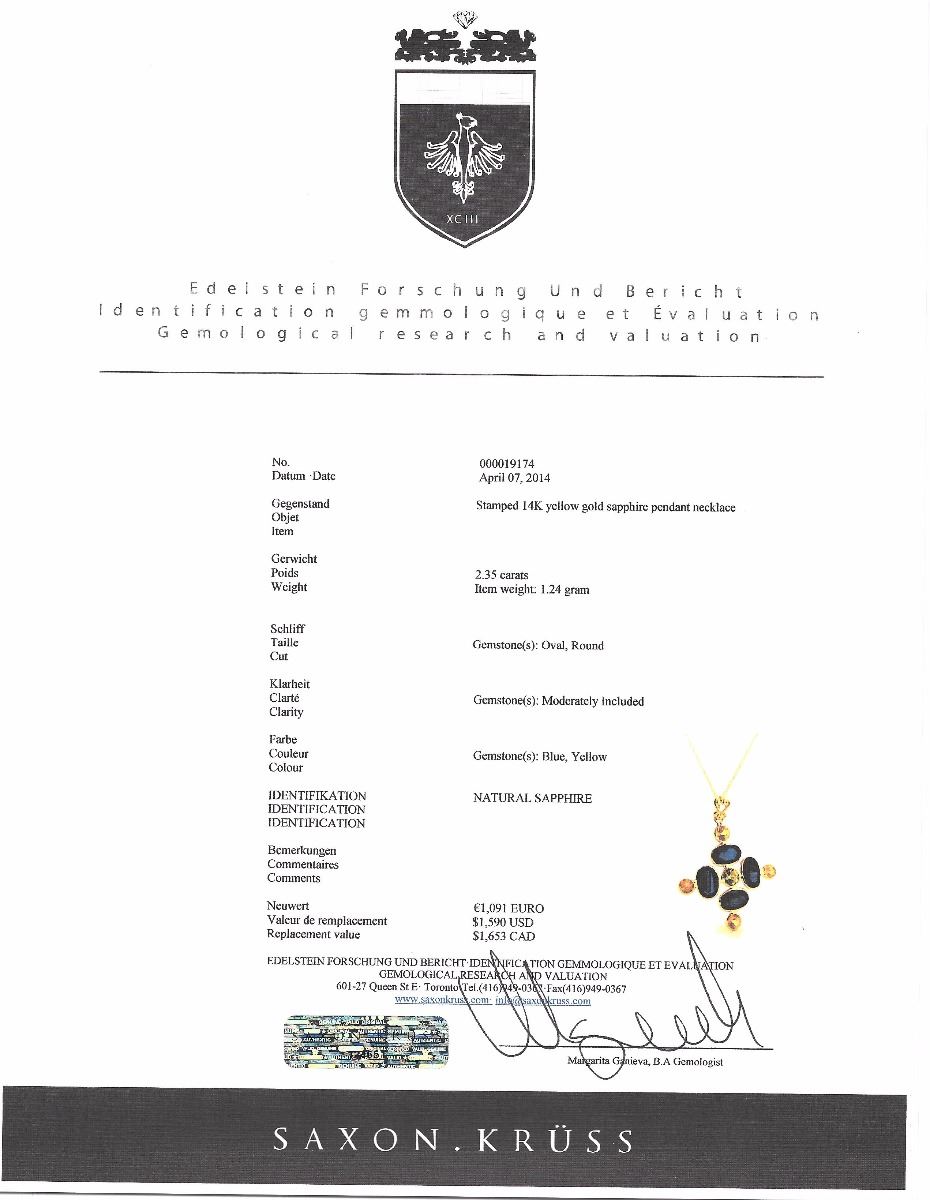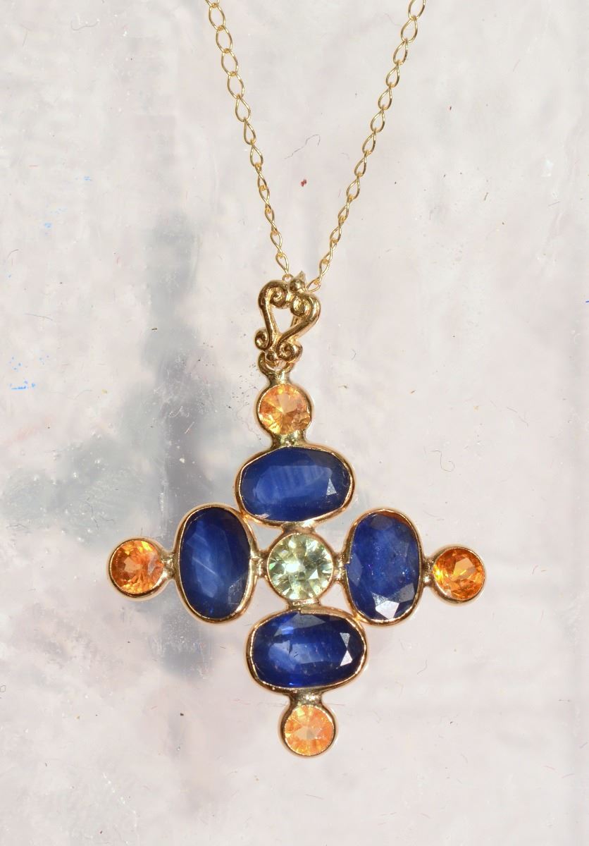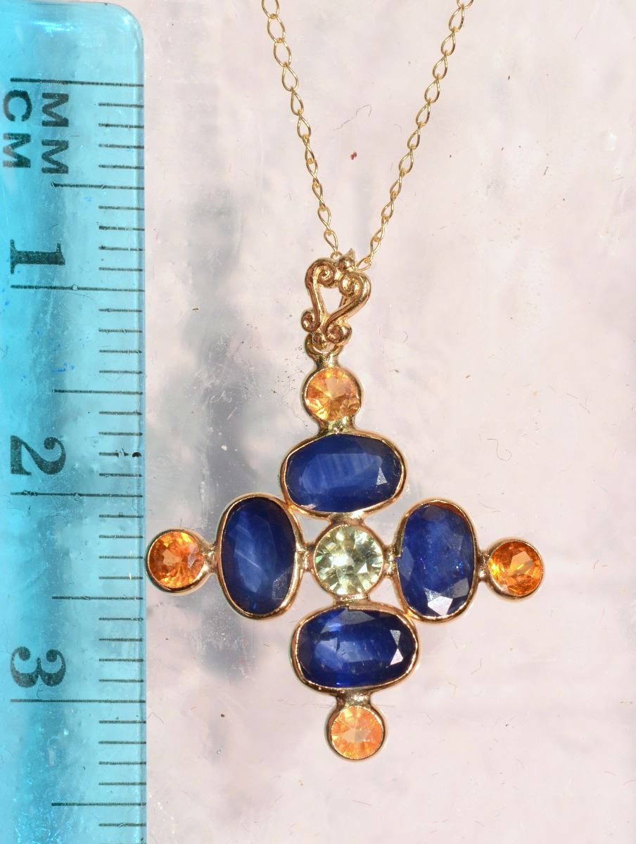 PENDANT NECKLACE 4 OVAL SHAPE BLUE SAPPHIRES, 5 ROUND SHAPE YELLOW SAPPHIRES - COMES WITH COA SUGGESTED REPLACEMENT VALUE $1653