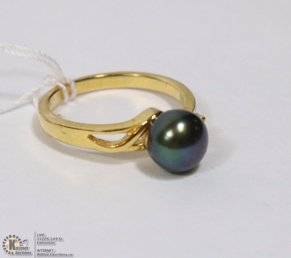8MM-8.5MM/GOLD PLATE,BLACK,CZ, SIZE 8
