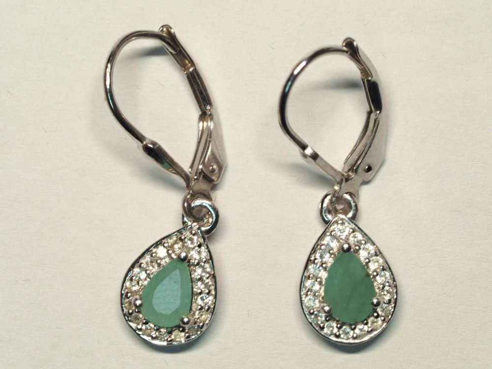547 - CR62 - STERLING SILVER EMERALD CUBIC ZIRCONIA EARRINGS (~WEIGHT 2.3G). JEWELRY