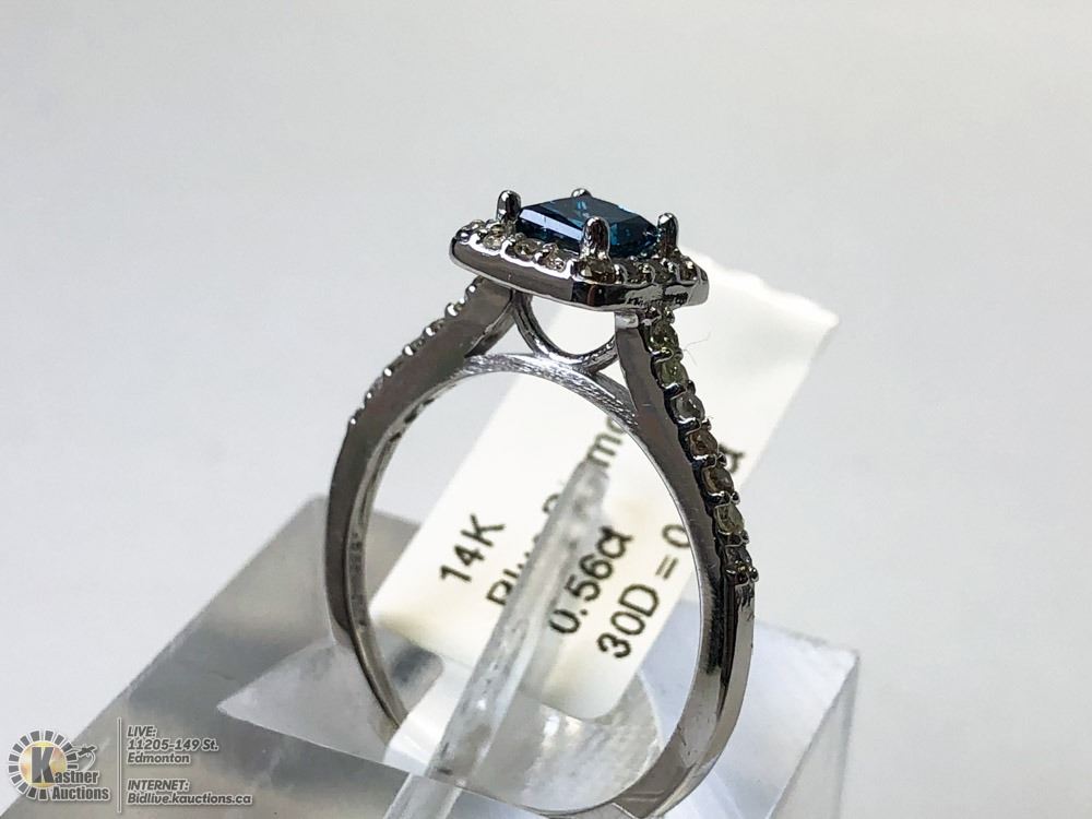 48-LS132 - 14KT WHITE GOLD DIAMOND (0.56CT) W/ SIDE DIAMOND (0.30CT) RING W/COA. SUGGESTED RETAIL VALUE $3600.00. JEWELLERY