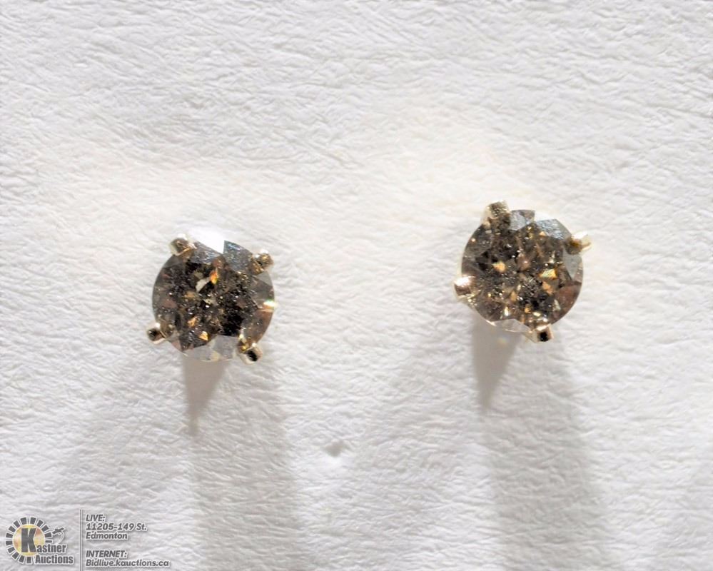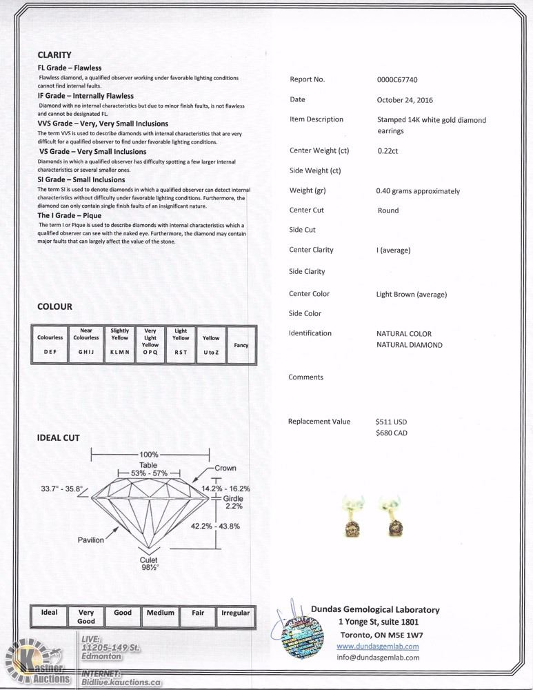 48 - GS11; 14KT WHITE GOLD BROWN DIAMOND (0.22CT) EARRINGS W/ COA - SUGGESTED REPLACEMENT VALUE $680.00