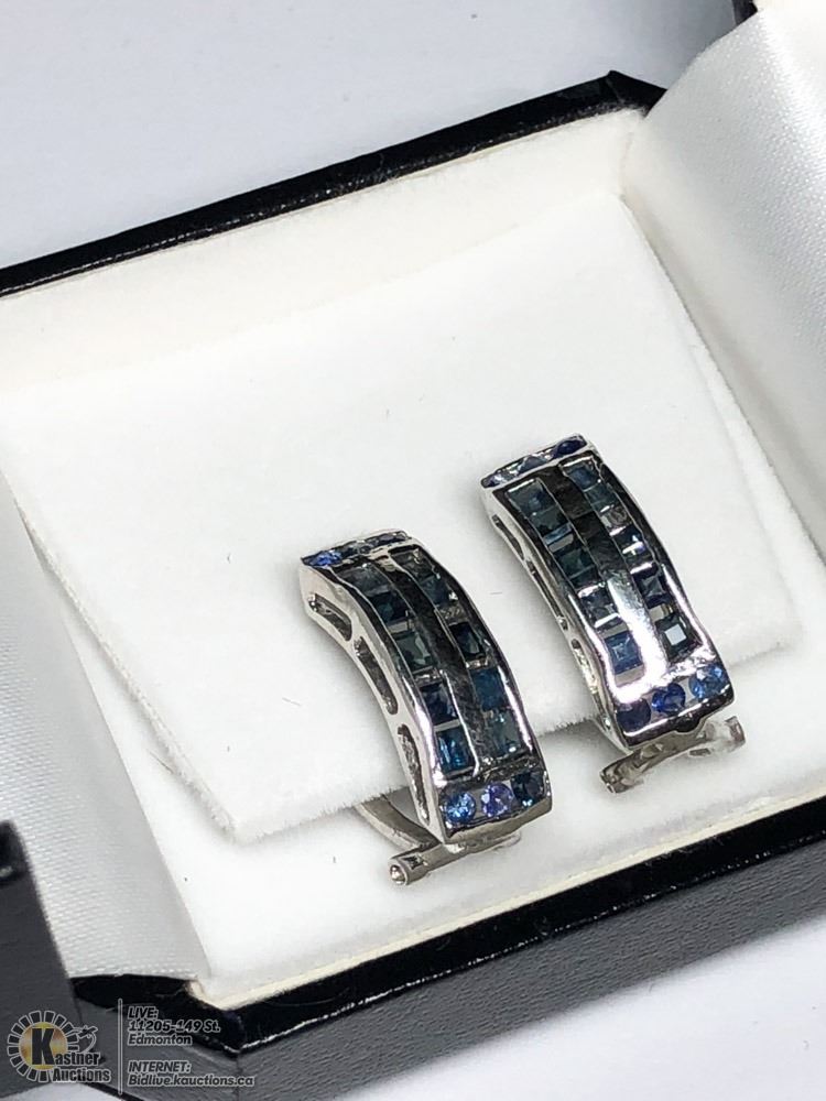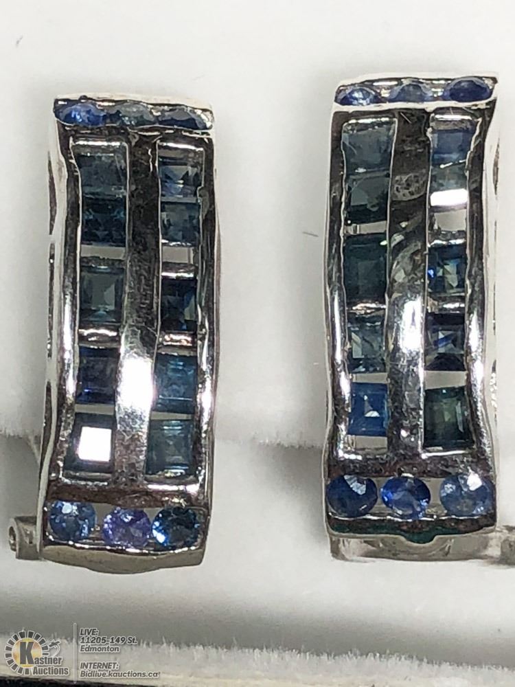 48-JP122 - STERLING SILVER BLUE SAPPHIRE EARRINGS. JEWELLERY