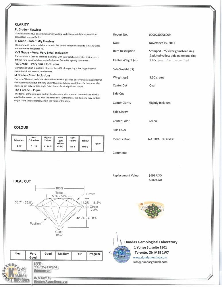 MS18 - 48- STERLING SILVER CHROME DIOPSIDE(1.80CT) RING SIZE 8, SUGGESTED REPLACEMENT VALUE $880.00. JEWELRY