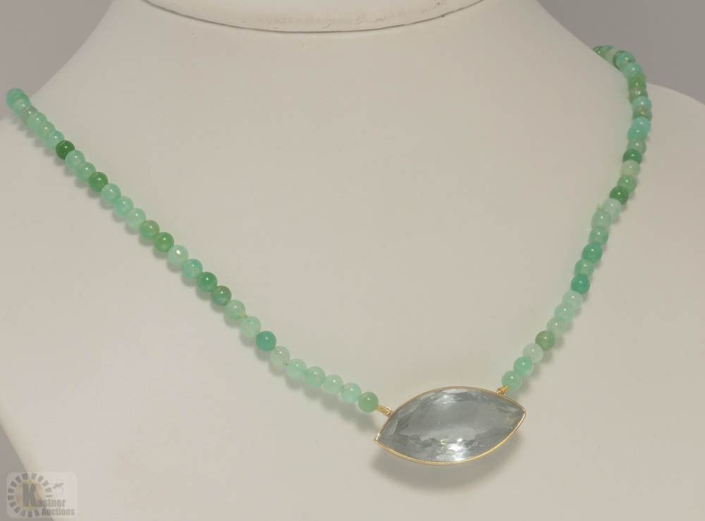 10KT YELLOW GOLD CLASP AQUAMARINE(26.00CT)& AUSTRALIAN JADE BEAD NECKLACE W/ COA - SUGGESTED REPLACEMENT VALUE $2,150.00