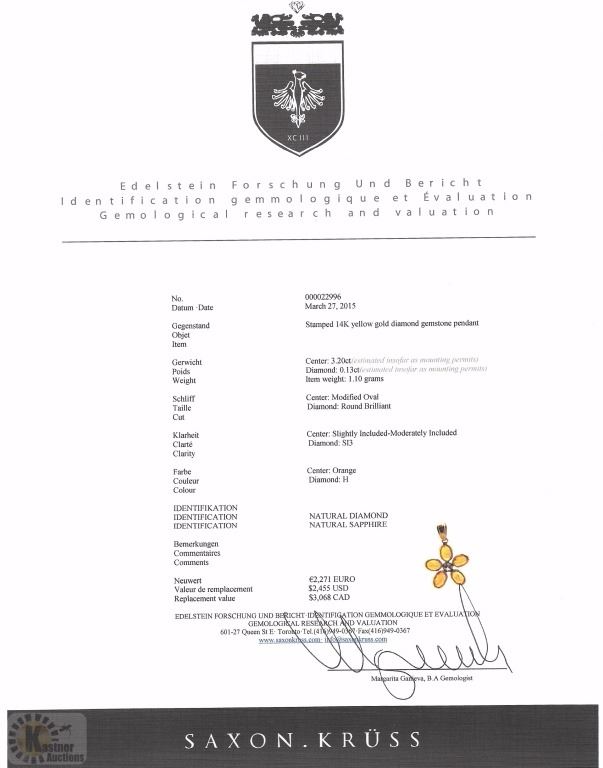 W/ COA - SUGGESTED REPLACEMENT VALUE $3,068.00