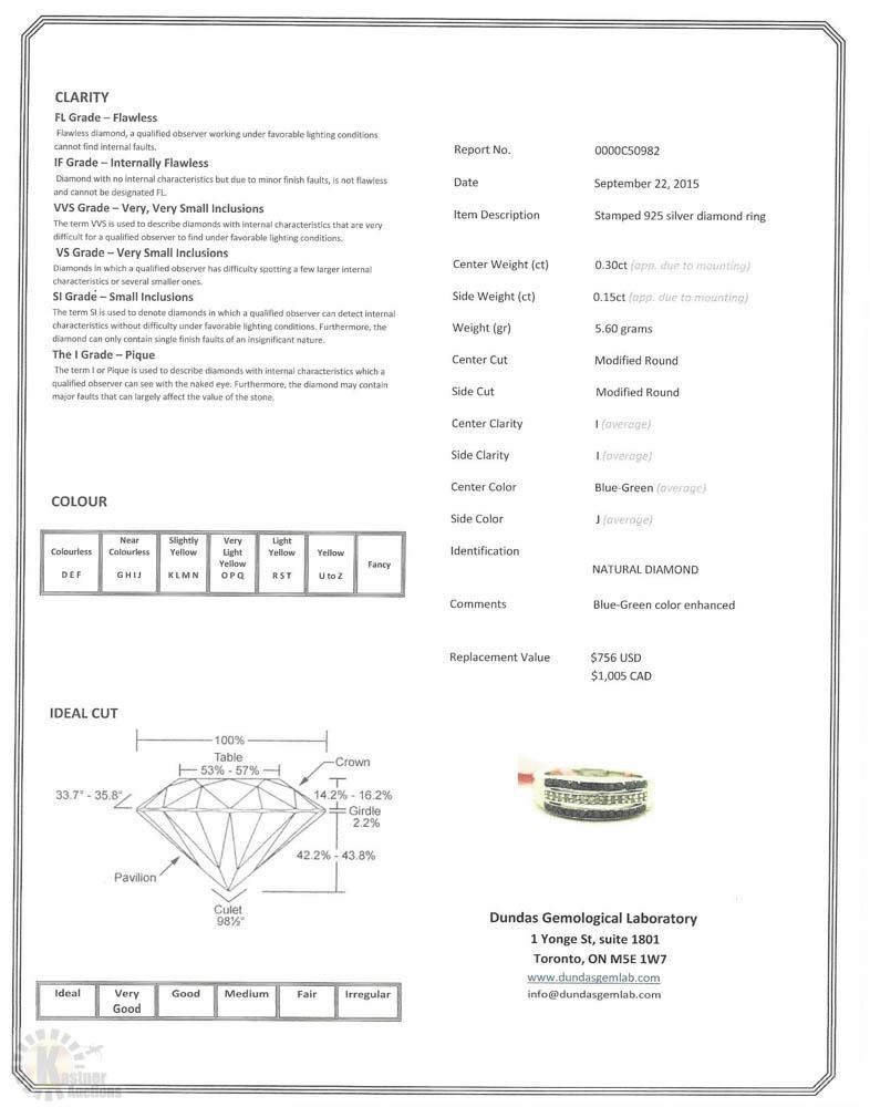 DIAMOND RING. SIZE: 7 W/ COA- SUGGESTED REPLACEMENT VALUE $1,005.00
