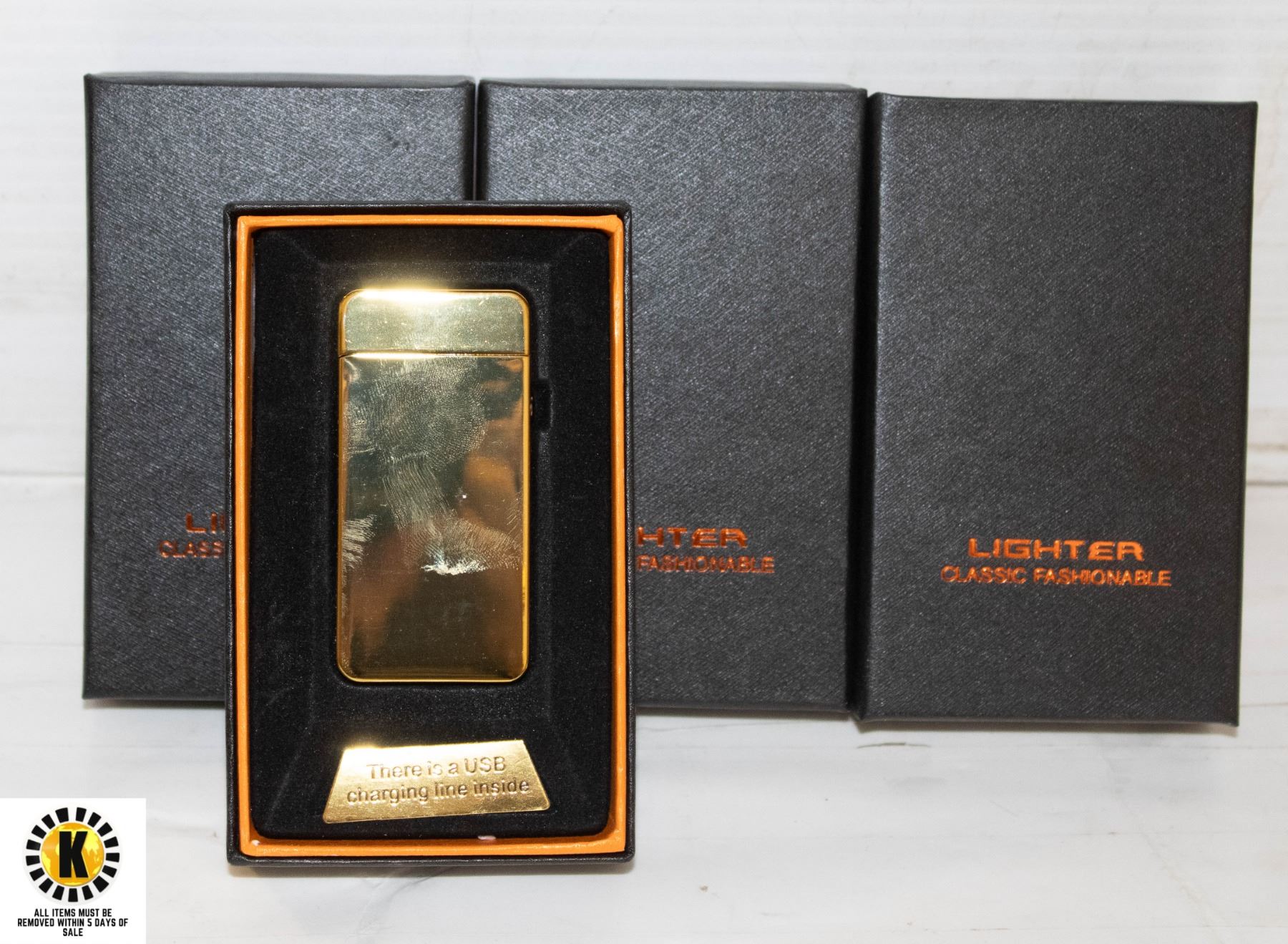 4PK PLASMA USB CHARGEABLE LIGHTERS; GOLD