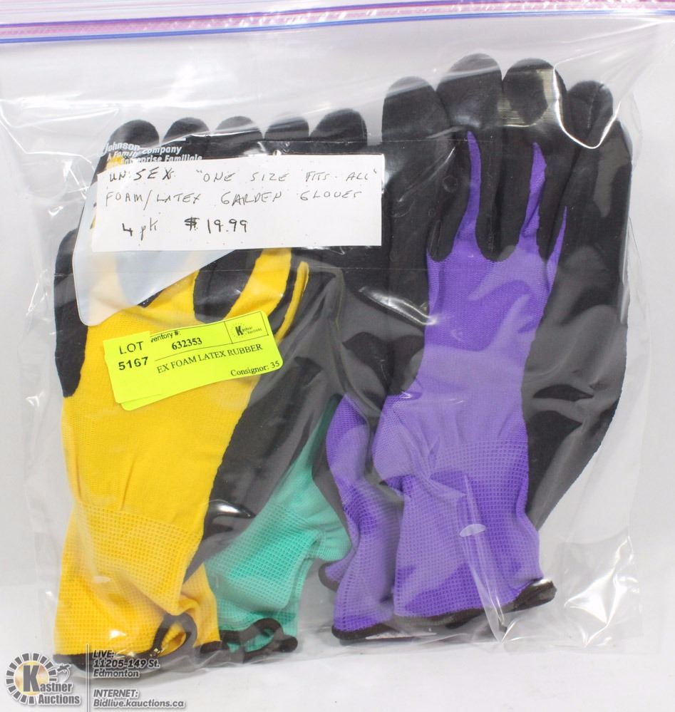 4PK UNISEX FOAM LATEX RUBBER GLOVES