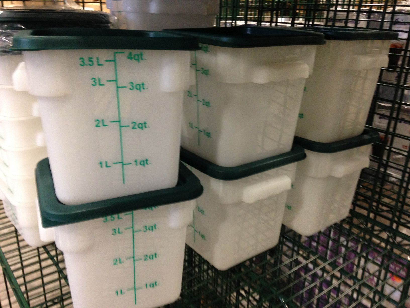 W220 - NEW 4QT WHITE FOOD STORAGE CONTAINERS WITH LIDS, POLYPROPYLENE - LOT OF 6