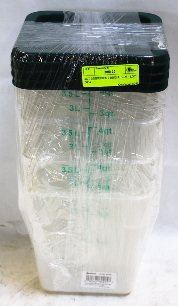 NEW - TRANSLUCENT - 4QT INGREDIENT BINS WITH LIDS - LOT OF 4