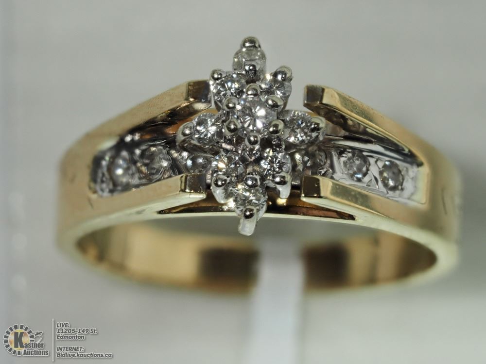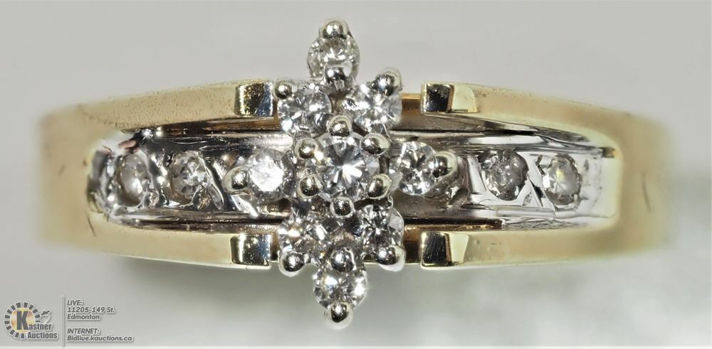 5-NT115- 14K YELLOW GOLD DIAMOND (0.18CT) FLORAL STYLE RING SIZE 5.5 W/COA. SUGGESTED REPLACEMENT VALUE $2250.00. JEWELLERY.