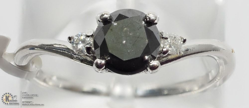 5 - MM86 - 14KT WHITE GOLD BLACK DIAMOND RING SIZE 5.75 W/COA. SUGGESTED REPLACEMENT VALUE $2600.00. JEWELLERY