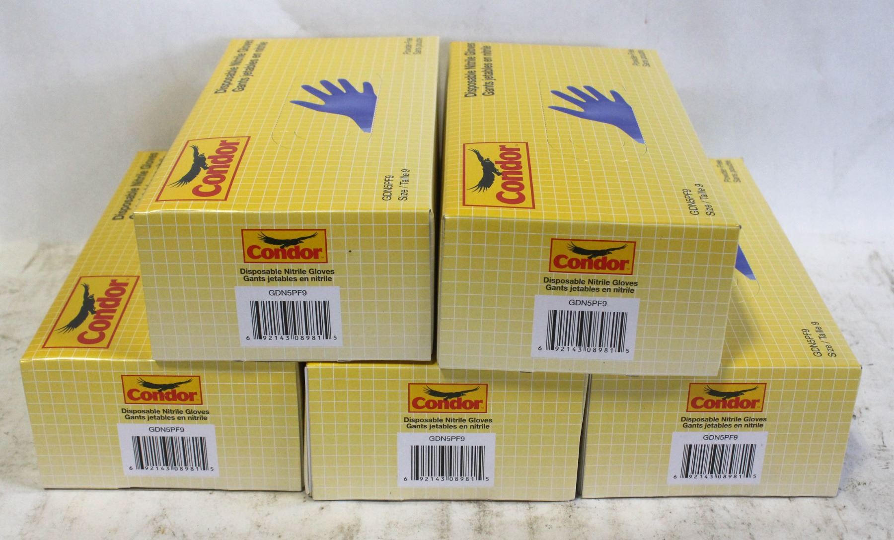 5 BOXES OF CONDOR DISPOSABLE NITRILE GLOVES SZ 9