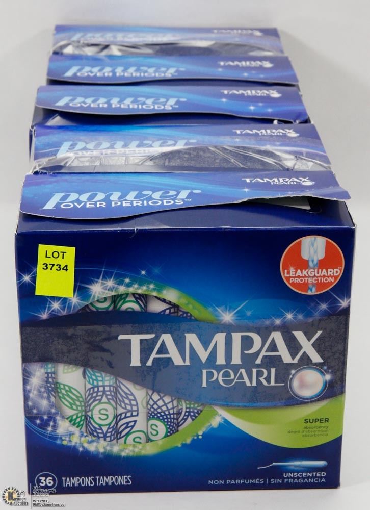 5 BOXES OF TAMPAX PEARL TAMPONS