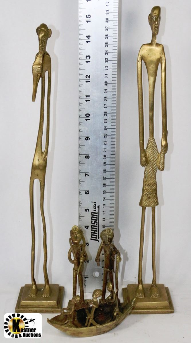 5 BRASS AFRICIAN FIGURES/STATUES 5"X16"