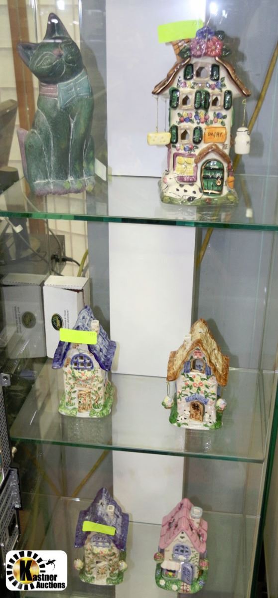5 CERAMIC HOUSE ORNAMENTS WITH CAT ORNAMENT