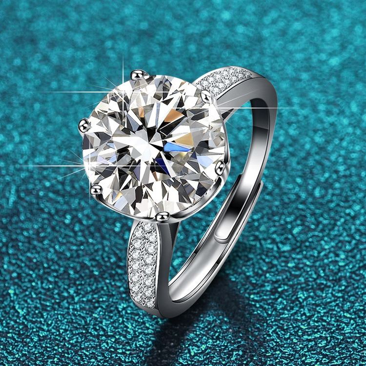 OPEN ADJUSTABLE SIZE LUXURY RING WITH VVS D COLOR GRADE CENTER MOISSANITE STONE AND PAVED BAND. COMES IN BOX WITH ITS CERTIFICATE. X089