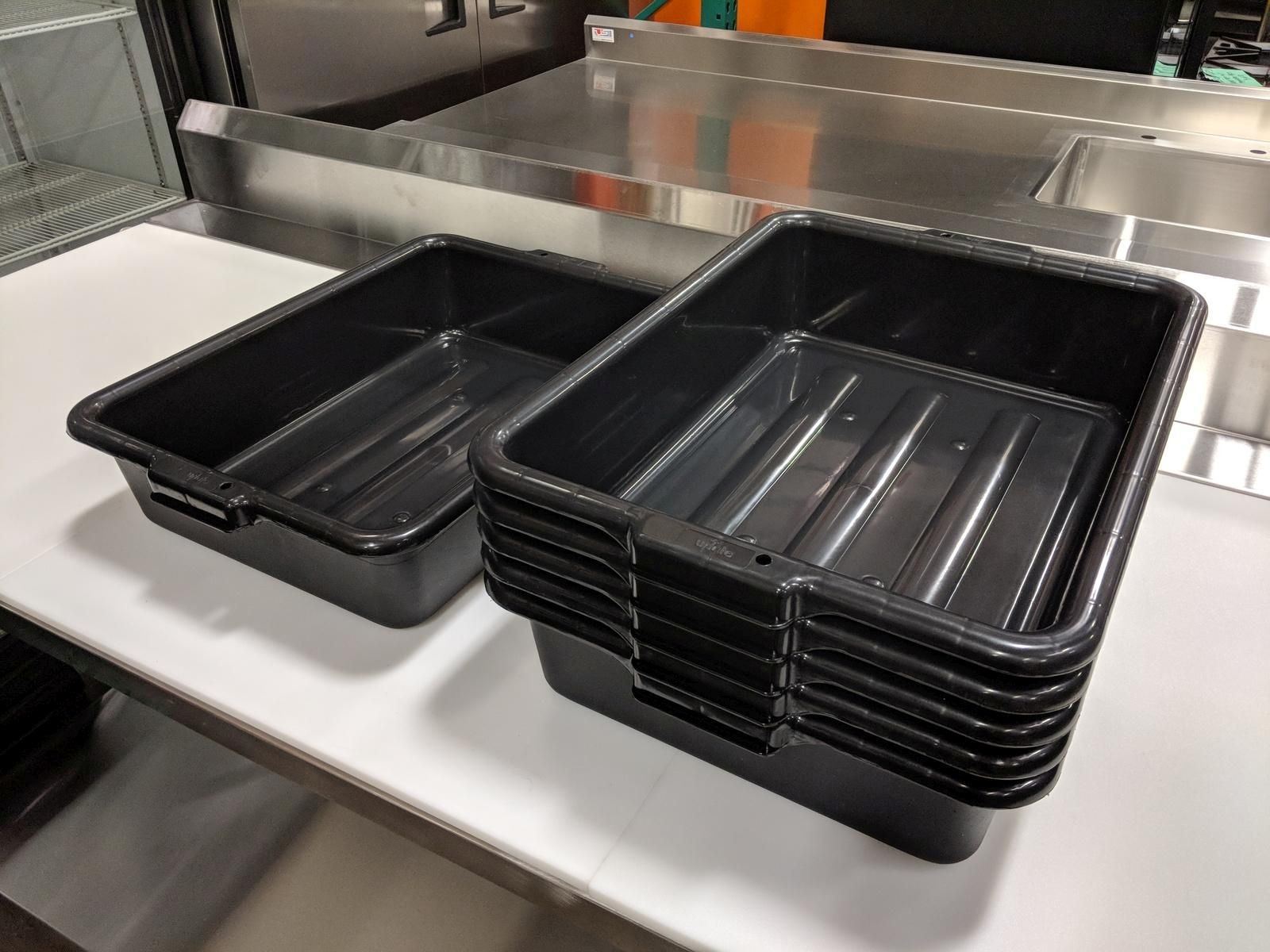 KW884 - NEW 20.25" X 15.5" X 5" DEEP BLACK TOTES, UPDATE BB-5B - LOT OF 6