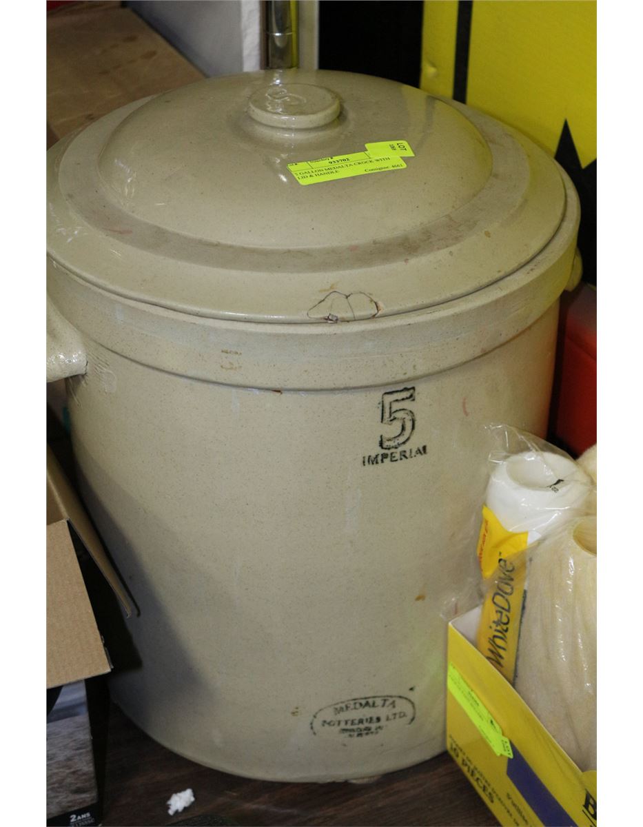 5 GALLON MEDALTA CROCK WITH LID & HANDLE