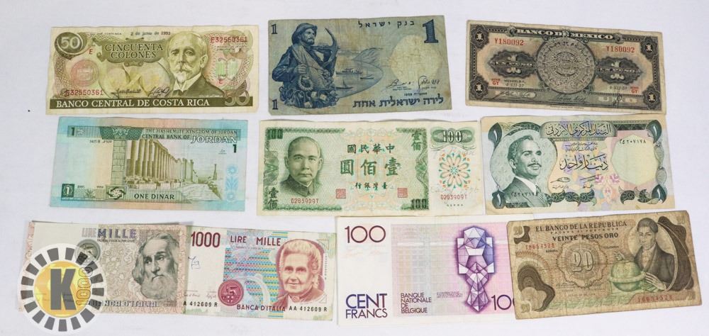 COSTA RICA, COLUMBIA, JORDAN & MEXICO, ETC. CURRENCY***ITEM(S) LOCATED IN LETHBRIDGE ALBERTA