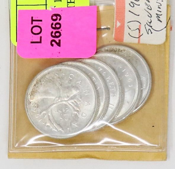 5 MINT 1963 SILVER CANADIAN QUARTERS