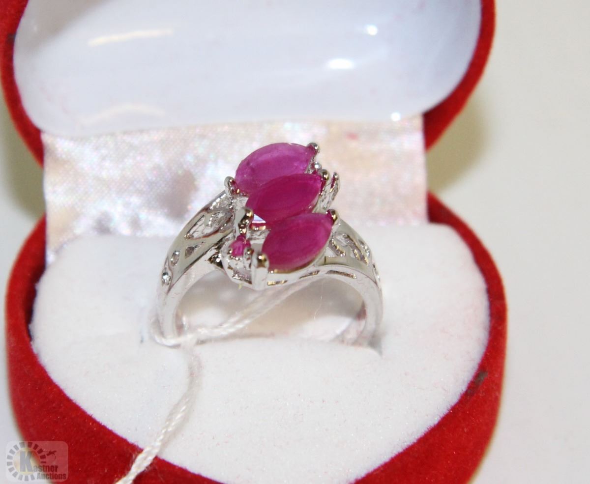 #5)NATURAL RUBY ENHANCED.925 SILVER RING SIZE 5.5