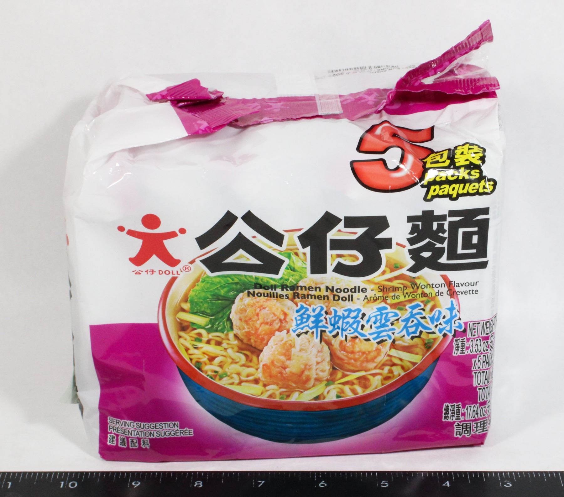 5 PACK OF RAMEN NOODLES SHRIMP WONTON