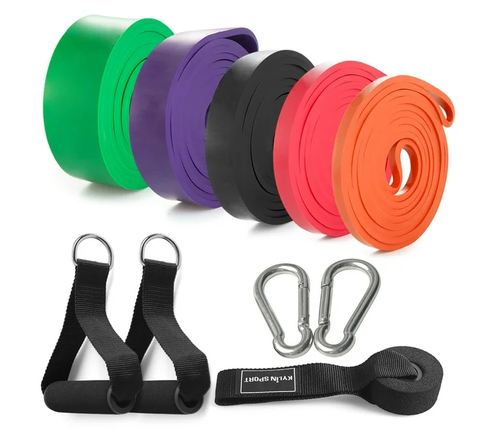 5 PACKS PULL UP ASSIST BANDS SET RESISTANCE LOOP BANDS POWERLIFTING WORKOUT EXERCISE STRETCH BANDS WITH DOOR ANCHOR FOAM HANDLES HOOKS AND CARRY BAG