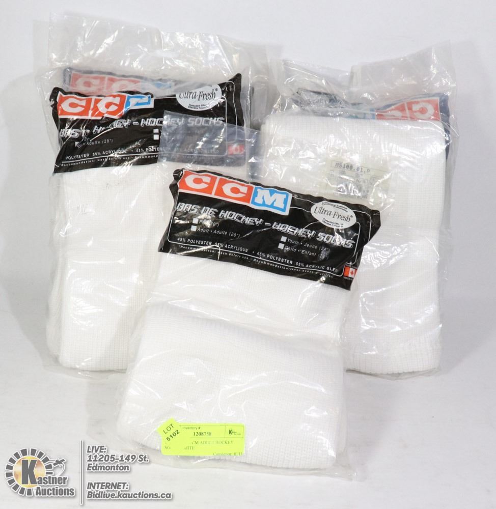 5 PAIRS OF CCM ADULT HOCKEY SOCKS WHITE