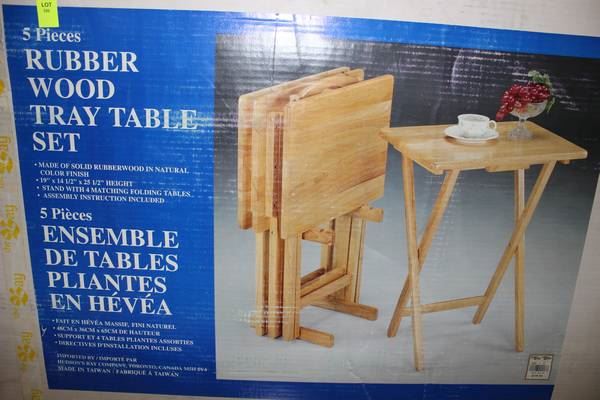 5 PC RUBBERWOOD TRAY TABLE SET