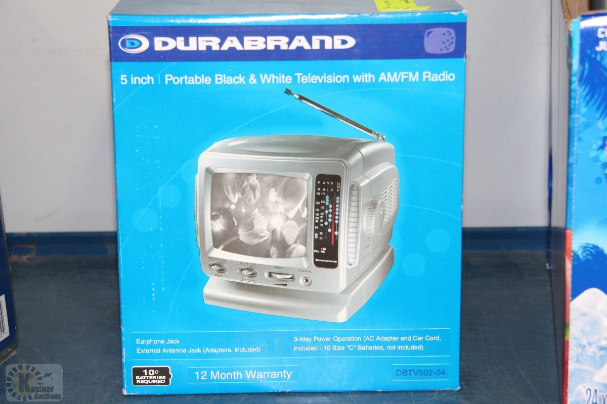 5" PORTABLE BLACK AND WHITE TV WITH AM/FM RADIO