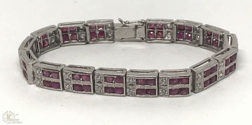 STERLING SILVER RUBY(7.0CT) & CUBIC ZIRCONIA BRACELET. W/ COA - SUGGESTED REPLACEMENT VALUE $1,350.00