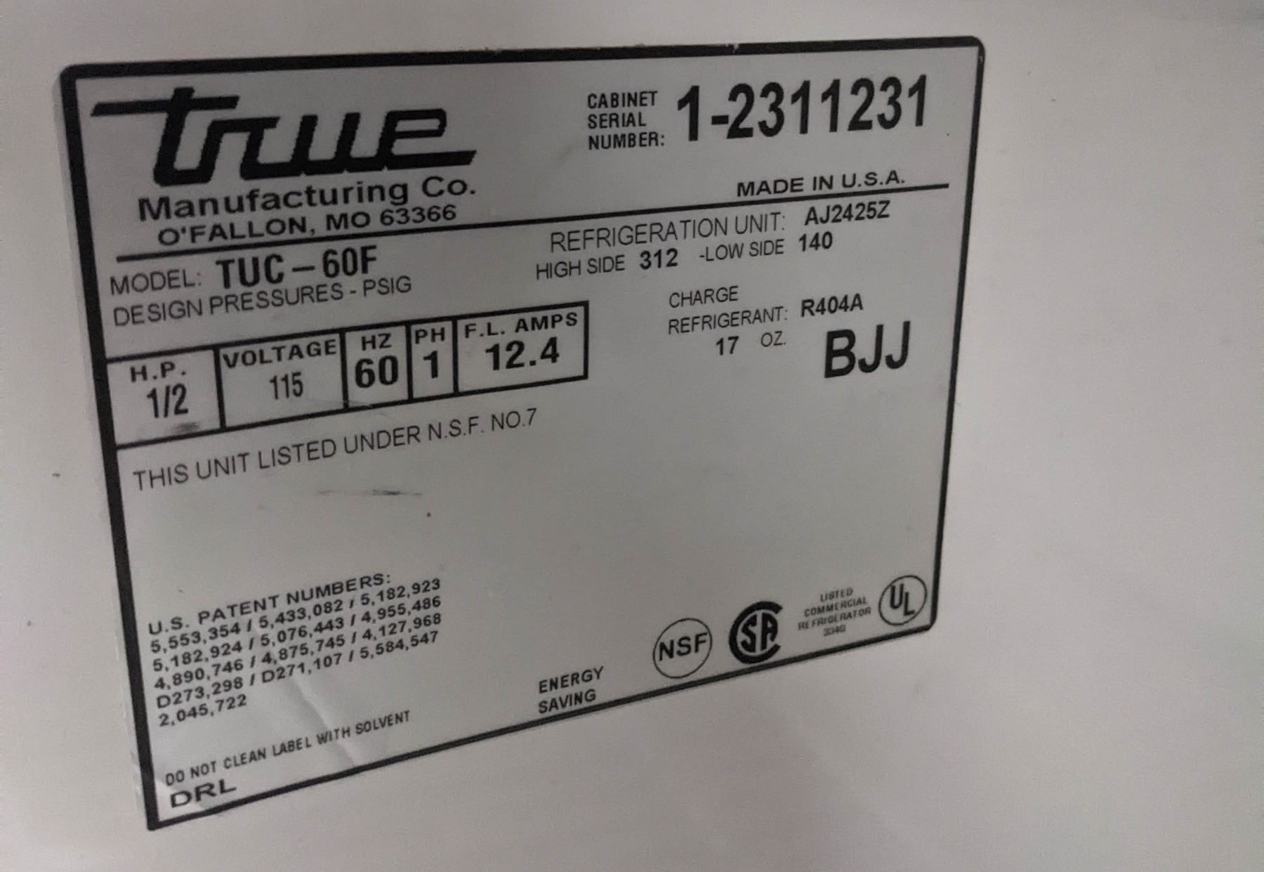 STAINLESS STEEL. M# TUC-60F, SINGLE PHASE, 120V, 12.4 FLA. 60.5" X 30" X 36" *WARPING ON TOP.**ALL ITEMS MUST BE REMOVED BY 5PM MONDAY, OCTOBER 24TH, 2022. ALL REMAINING ITEMS WILL BE SUBJECT TO A $6.00 PER DAY STORAGE CHARGE. ANY ITEMS REMAINING AFTER MONDAY, SEPTEMBER 26TH, 2022 WILL BE CONSIDERED FORFEITED. NO REFUNDS WILL BE ISSUED FOR FORFEITED ITEMS.** TO SCHEDULE A PICK UP APPOINTMENT CLICK HERE