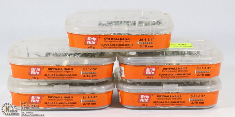 5 TUBS OF 3D 1-1/4  DRYWALL NAILS