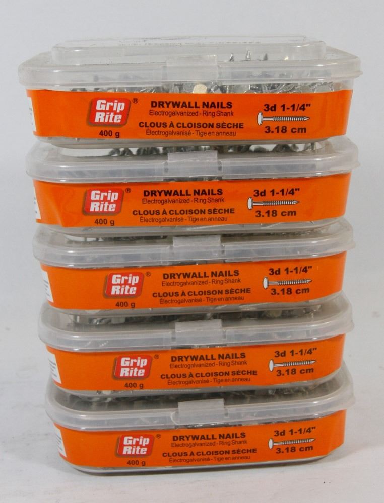 5 TUBS OF GRIP RITE DRYWALL NAILS 3D 1-1/4"