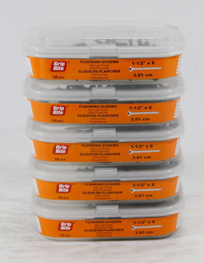 5 TUBS OF GRIP RITE FLOORING SCREWS 1-1/2" X 8