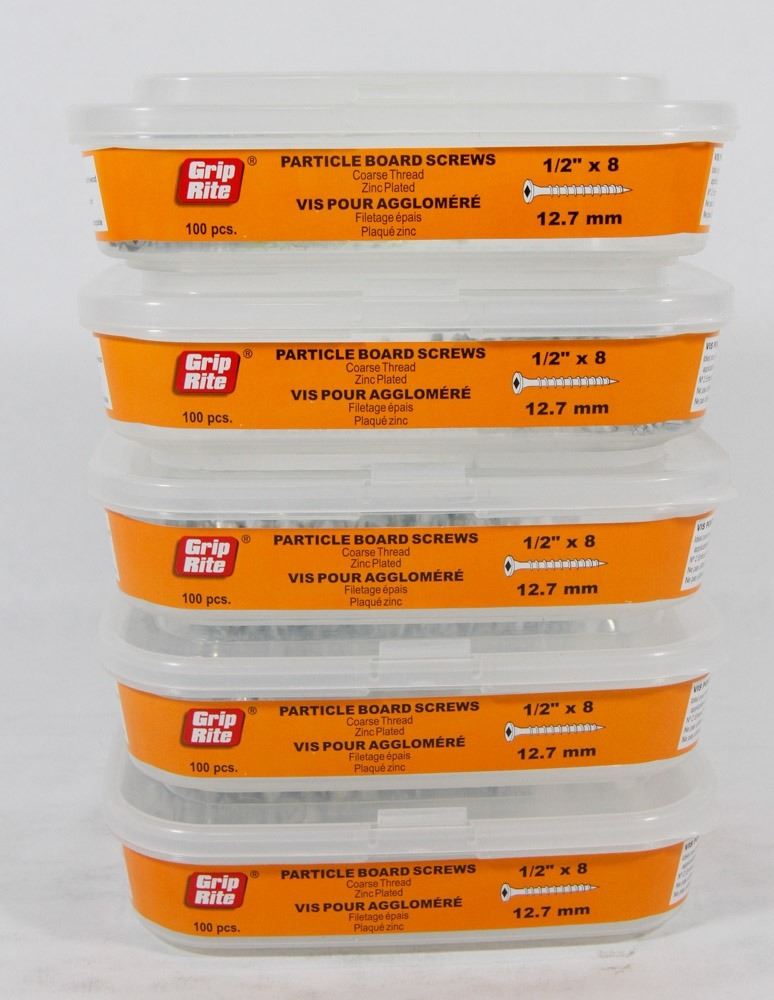 5 TUBS OF PARTICLE BOARD SCREWS 1/2" X 8