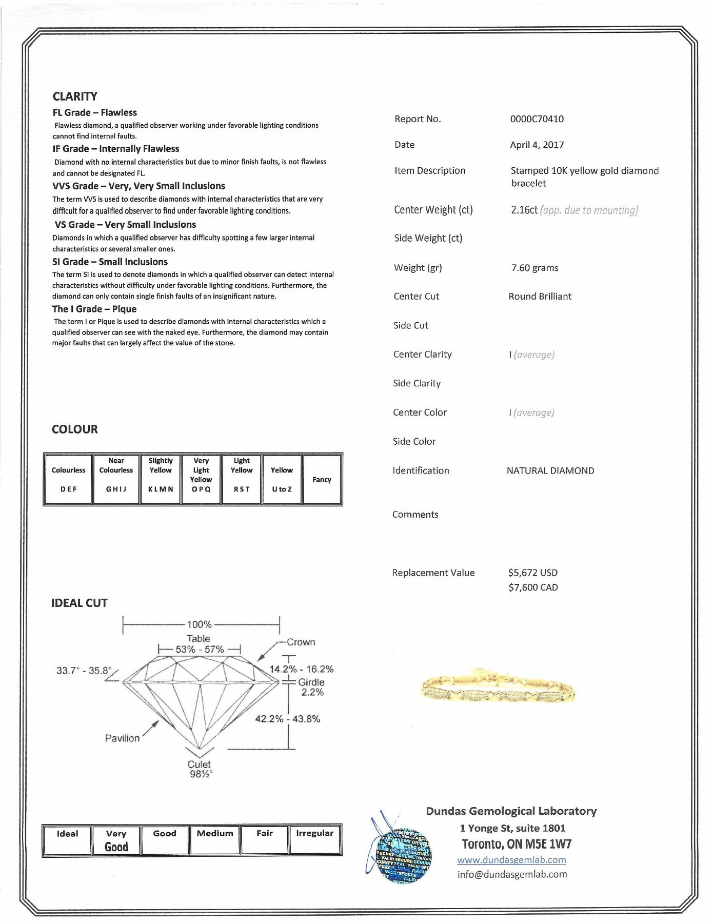 (50 - NT45) BRACELET (APPROX. 7.60G) WITH COA -SUGGESTED REPLACEMENT VALUE $7,600.00.JEWELLERY